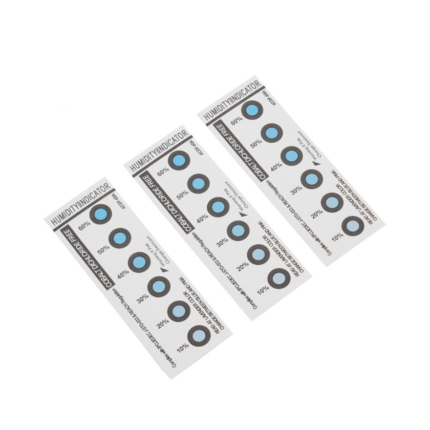 Die Teststreifen sind eine praktische, günstige und sichere Methode um die Feuchtigkeit zu prüfen. Man kann hiermit per Farbanzeige die genaue Feuchtigkeit im Inneren der Verpackungen ablesen. Je nach Feuchtigkeitszustand wechselt die Farbe auf dem Teststreifen von „trocken" zu „feucht".
