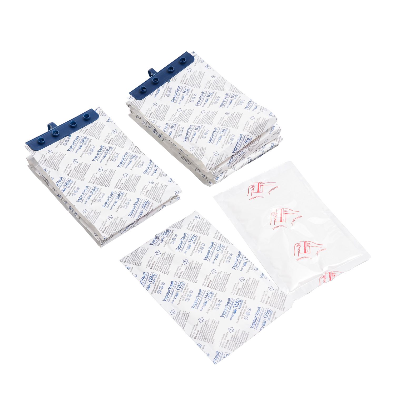 • Silica gel: Universal desiccant with high absorption capacity, ideal for electronics, pharmaceuticals and food.